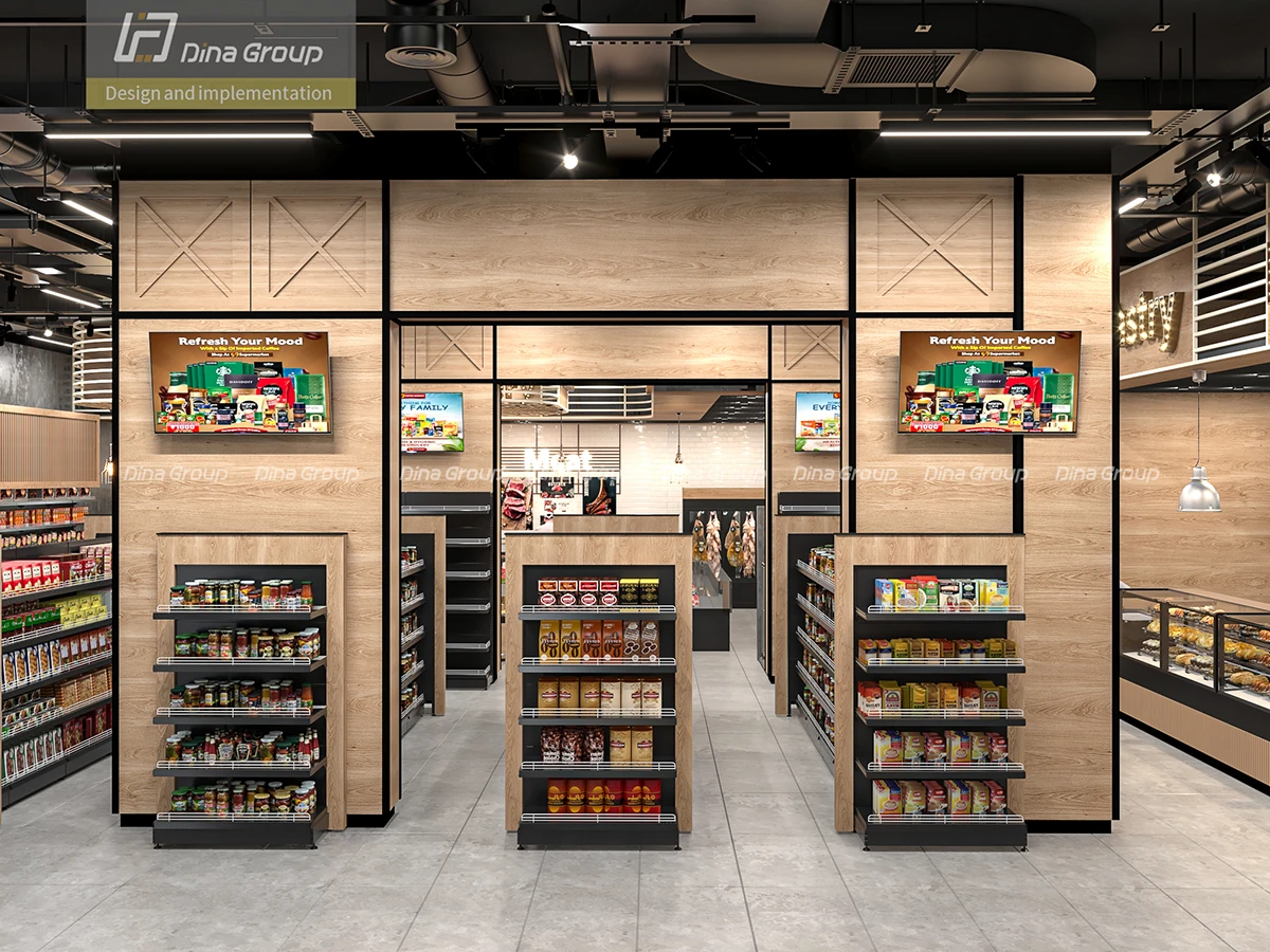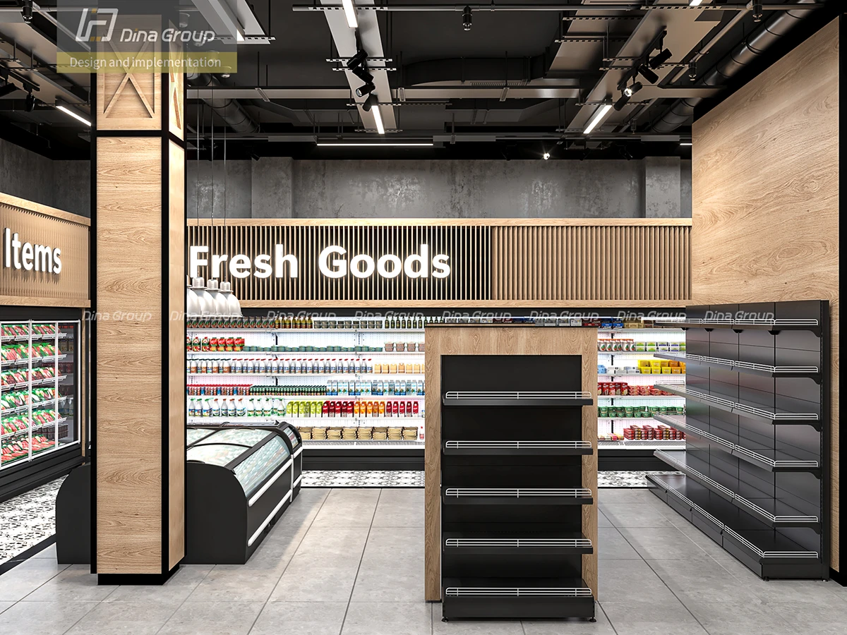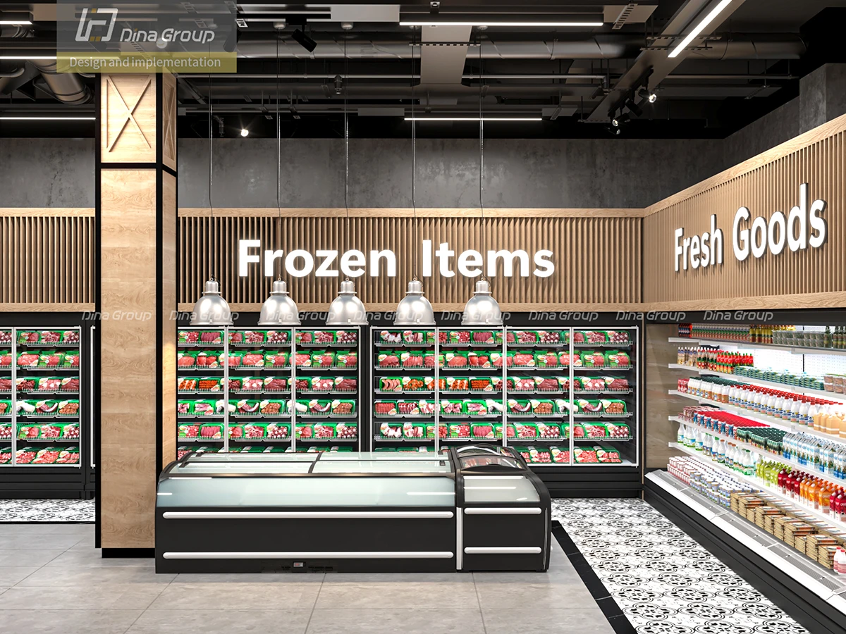 The project began with comprehensive space planning and 3D design renderings to visualize the store’s flow and customer journey. With before photos and our realistic render visuals, the client could clearly see the transformation process ahead of execution. Every department—from fresh produce and frozen goods to bakery, butchery, and coffee corner—was carefully designed to maximize visibility, accessibility, and sales potential.