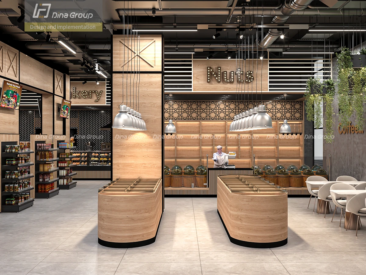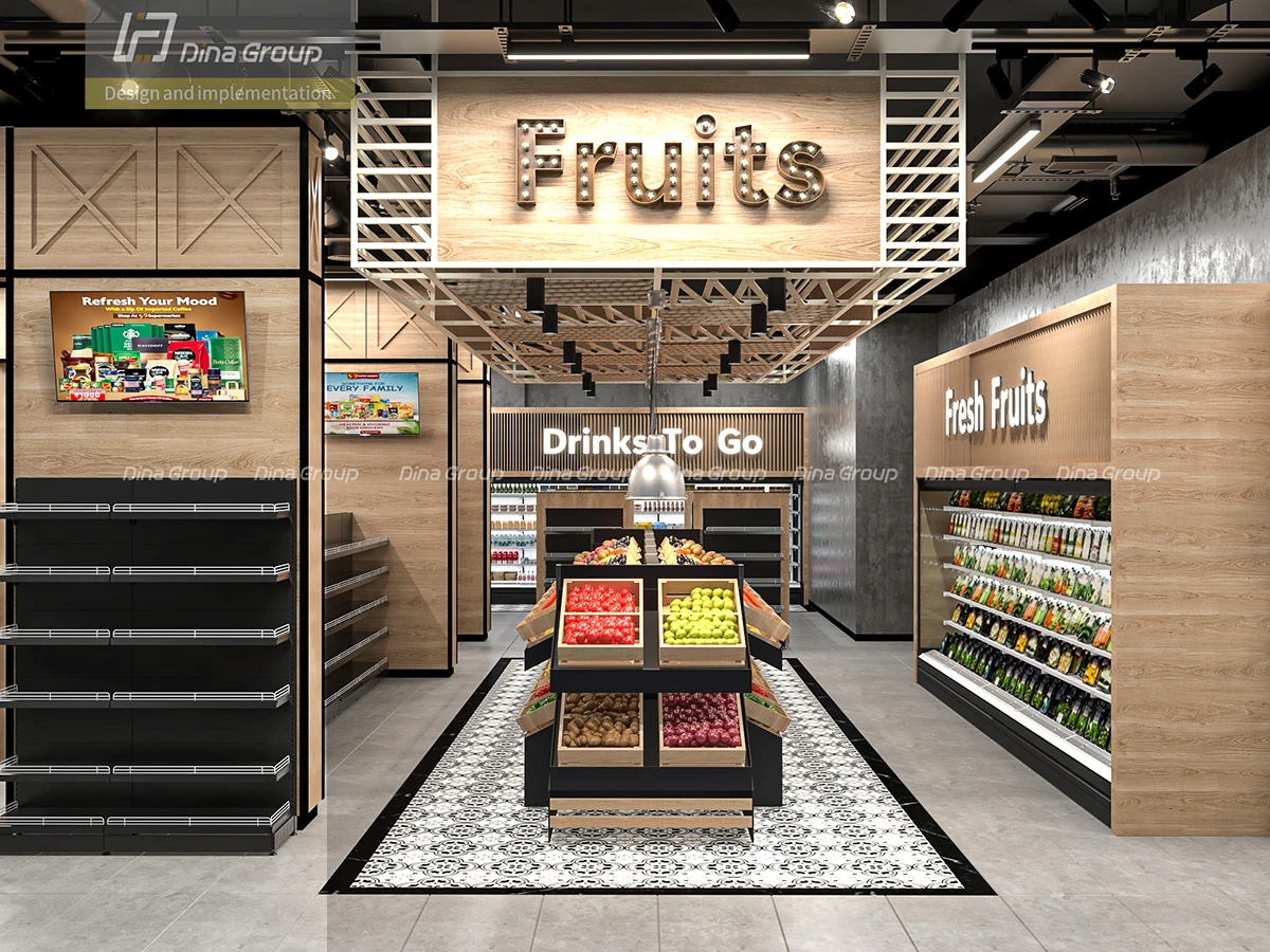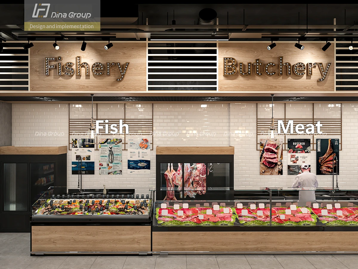 The project began with comprehensive space planning and 3D design renderings to visualize the store’s flow and customer journey. With before photos and our realistic render visuals, the client could clearly see the transformation process ahead of execution. Every department—from fresh produce and frozen goods to bakery, butchery, and coffee corner—was carefully designed to maximize visibility, accessibility, and sales potential.